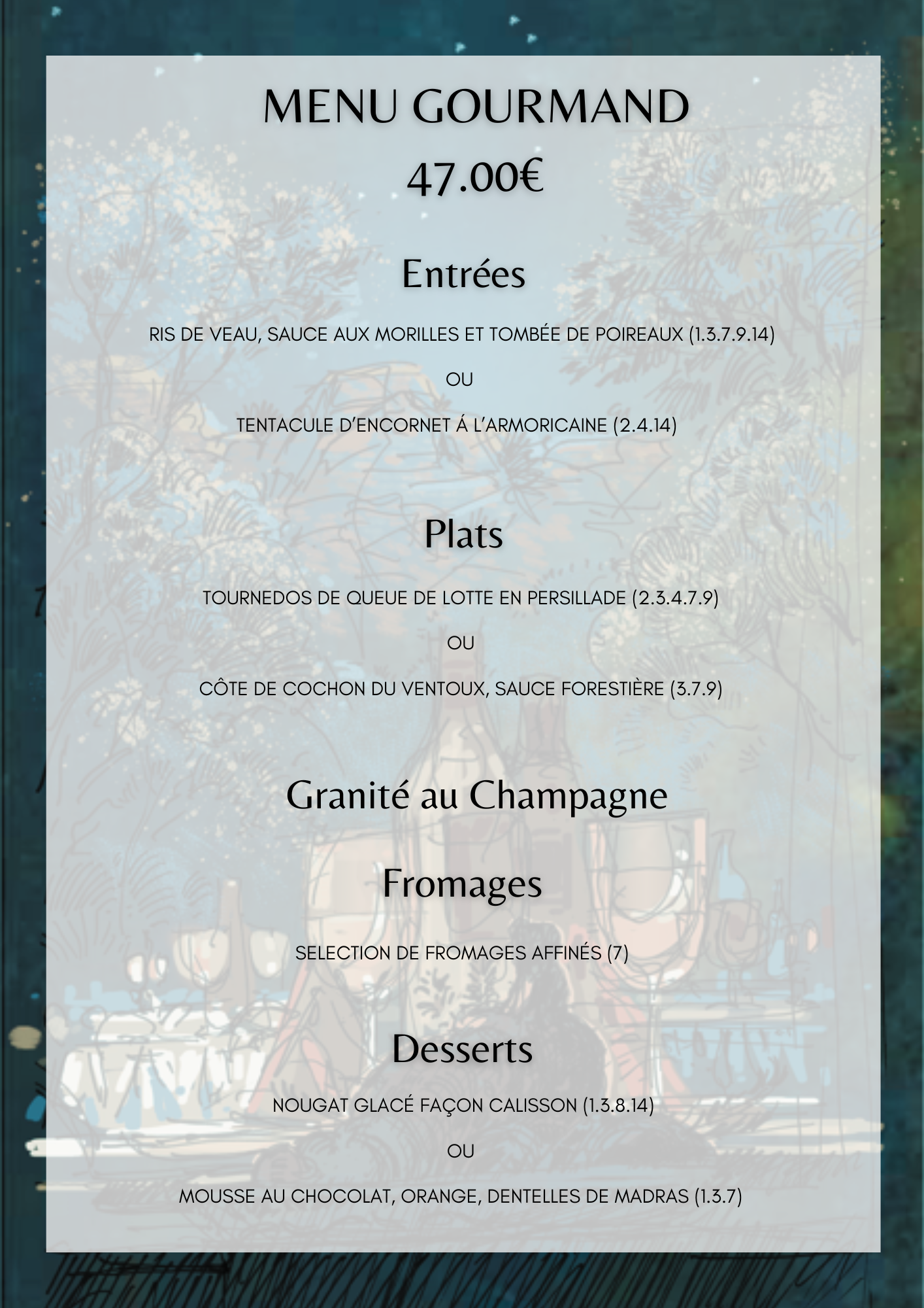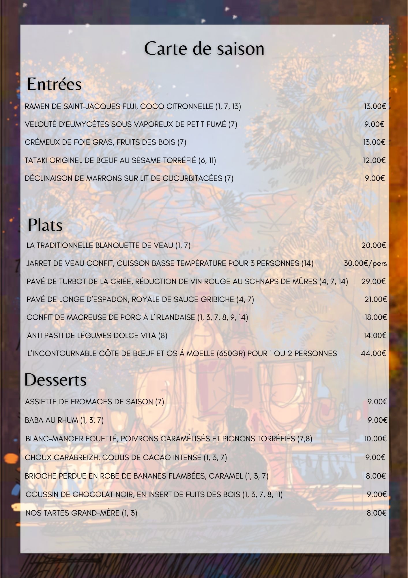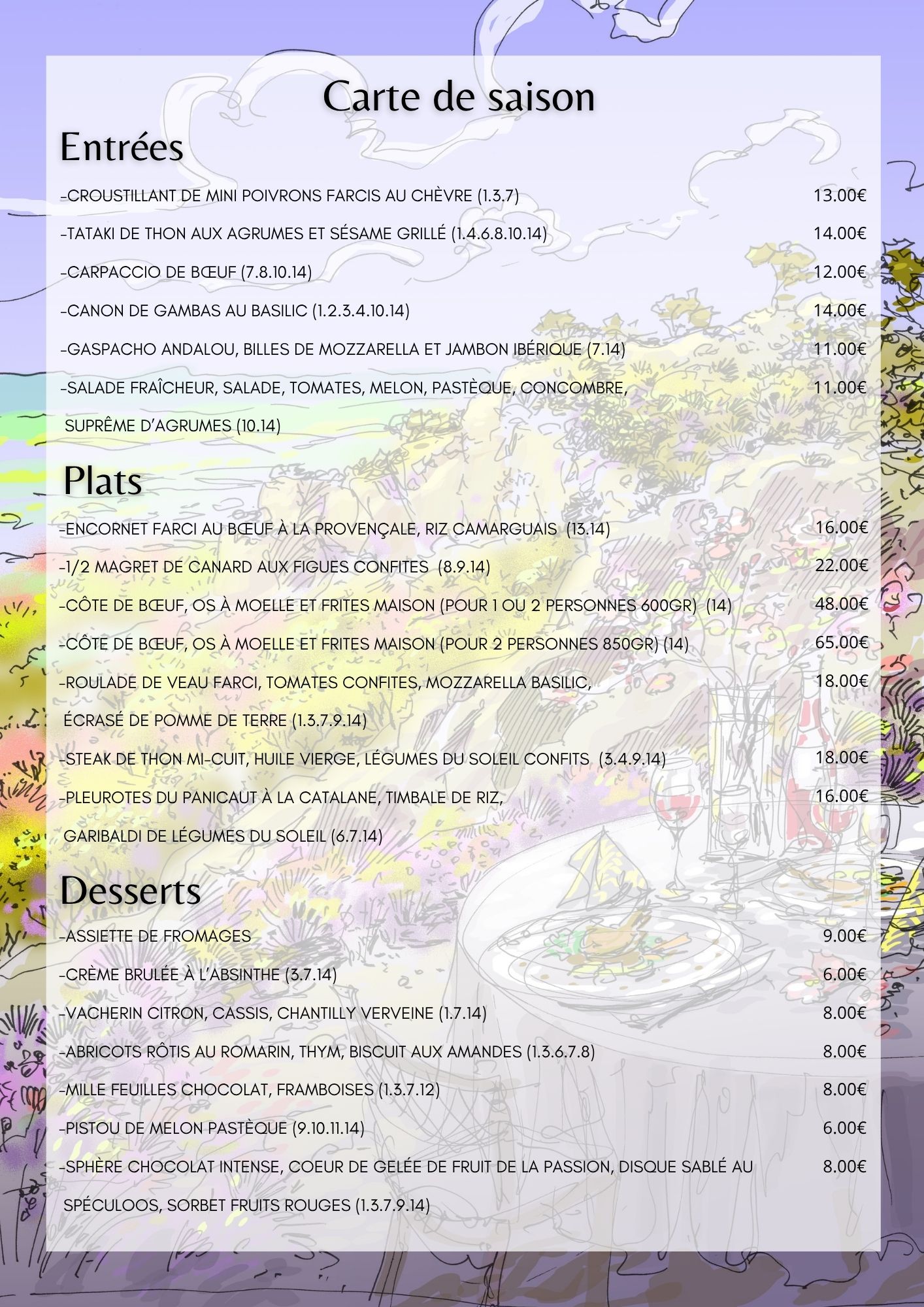 La carte du restaurant du Domaine de Roquerousse renouvelée au fil des saisons et des inspirations du chef.